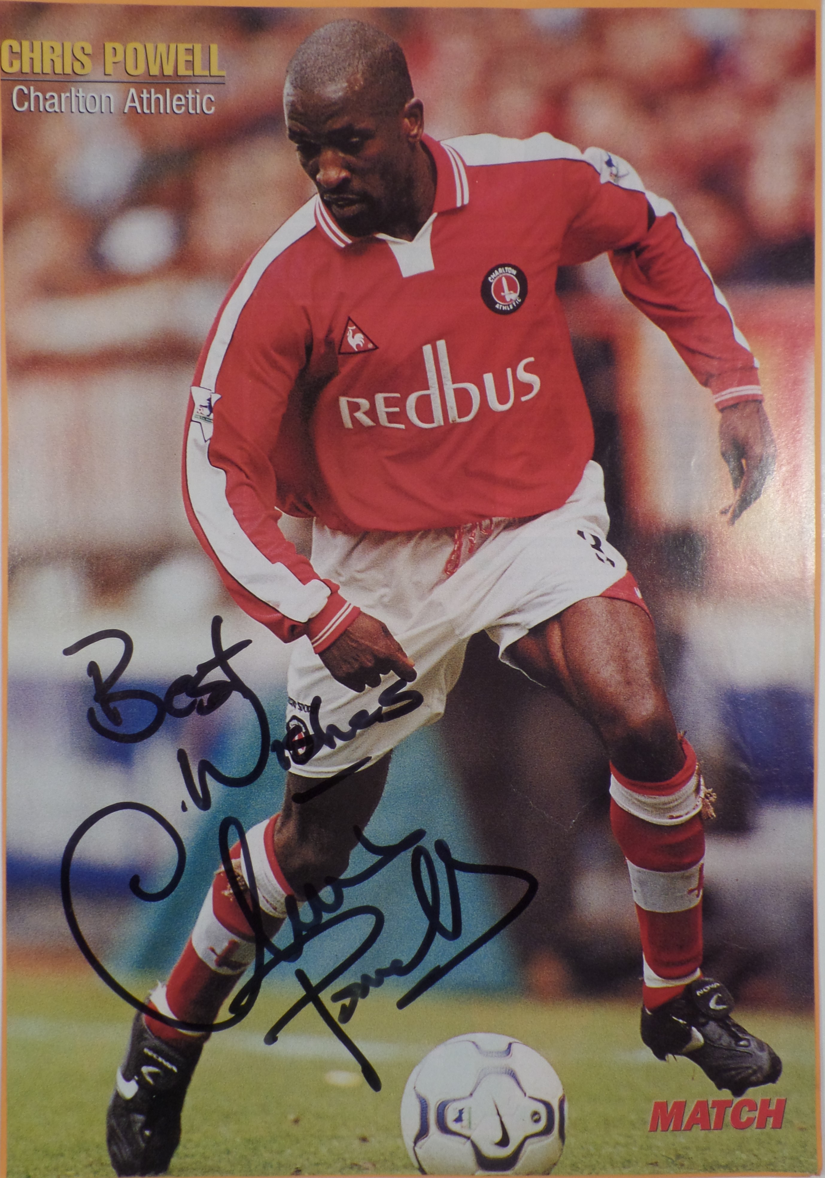 Chris Powell har skrevet sin autograf på billedet.