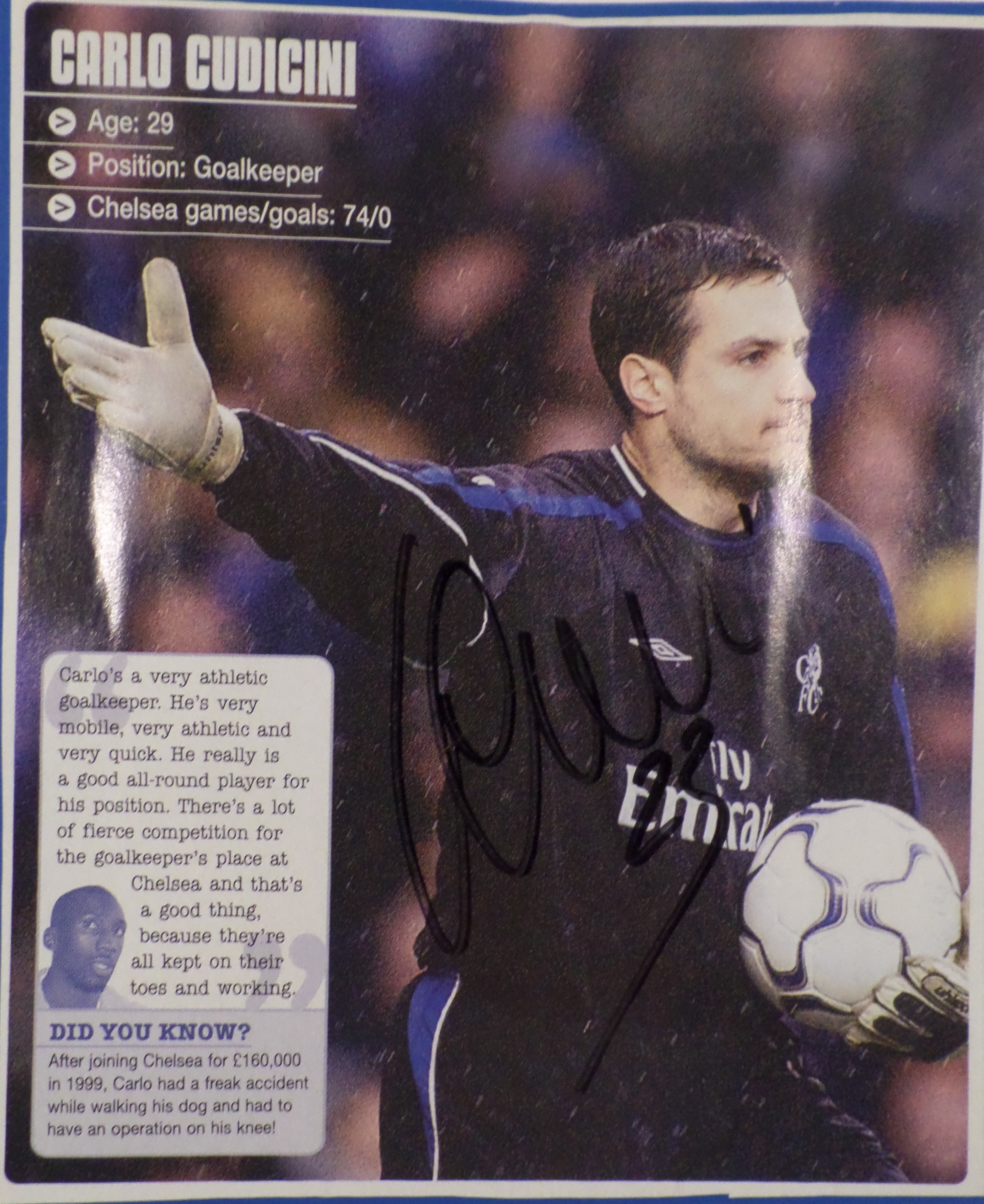 Carlo Cudicini har skrevet sin autograf på billedet.