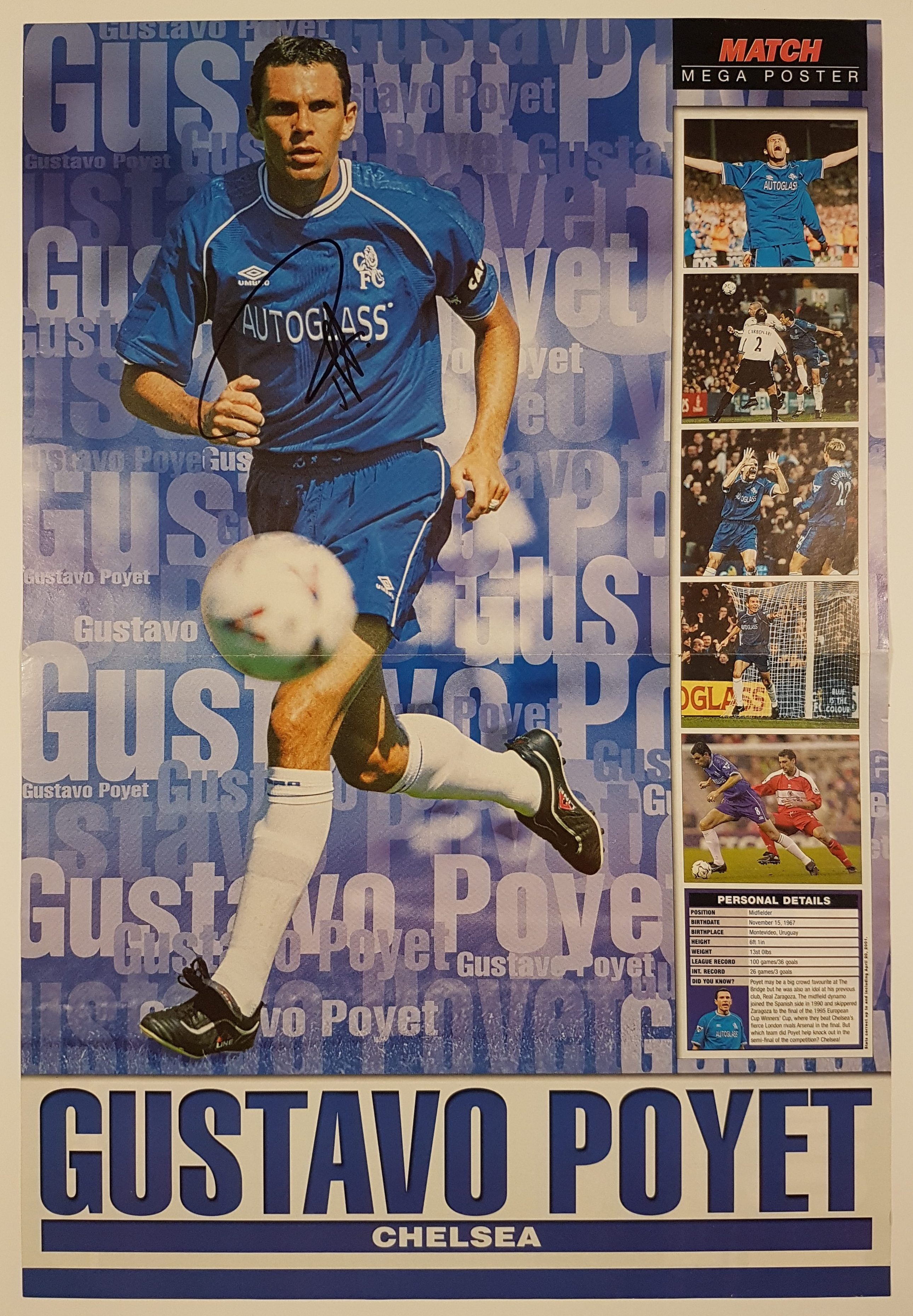 Gustavo Poyet har skrevet sin autograf på billedet.