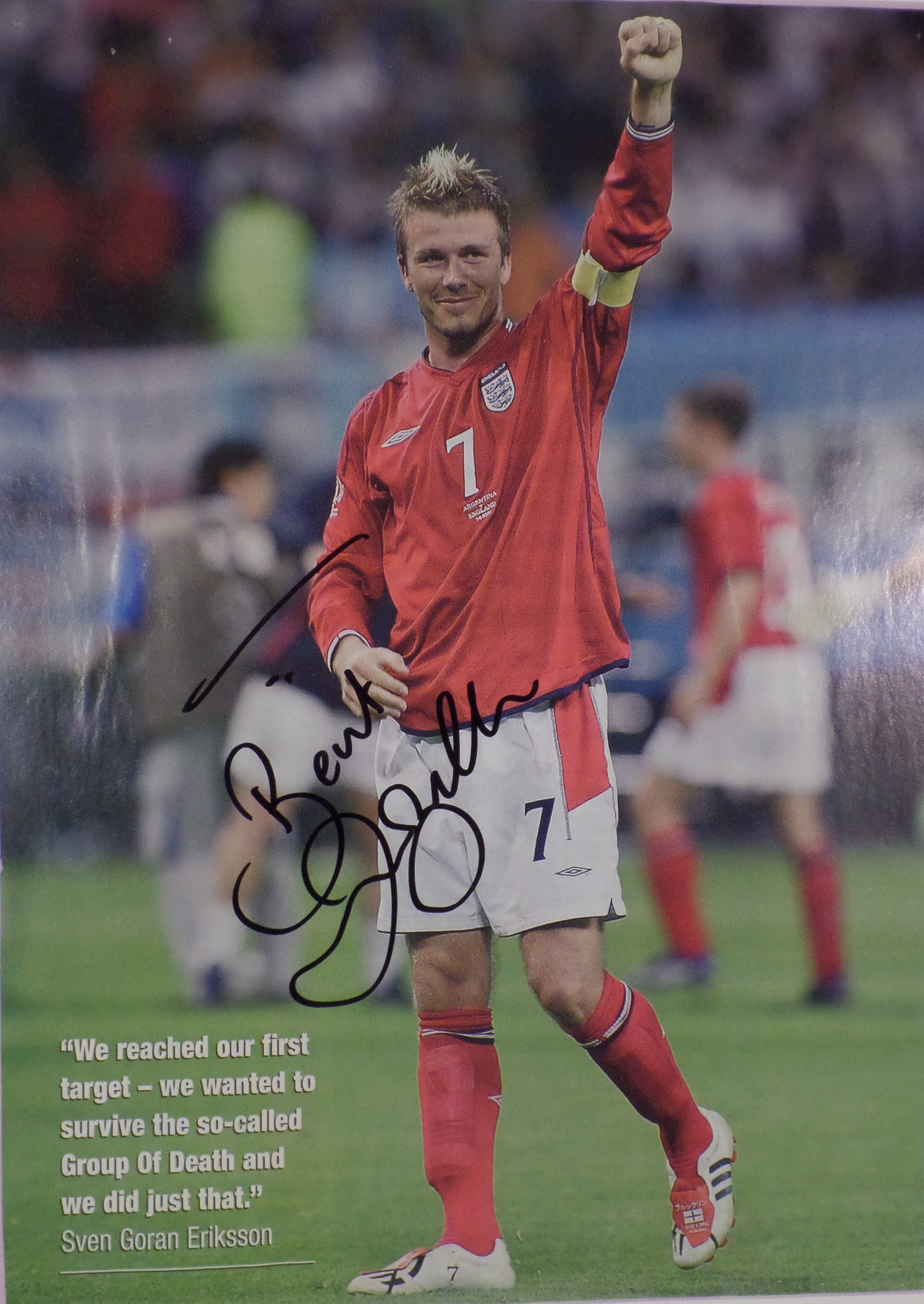 David Beckham har skrevet sin autograf på billedet.