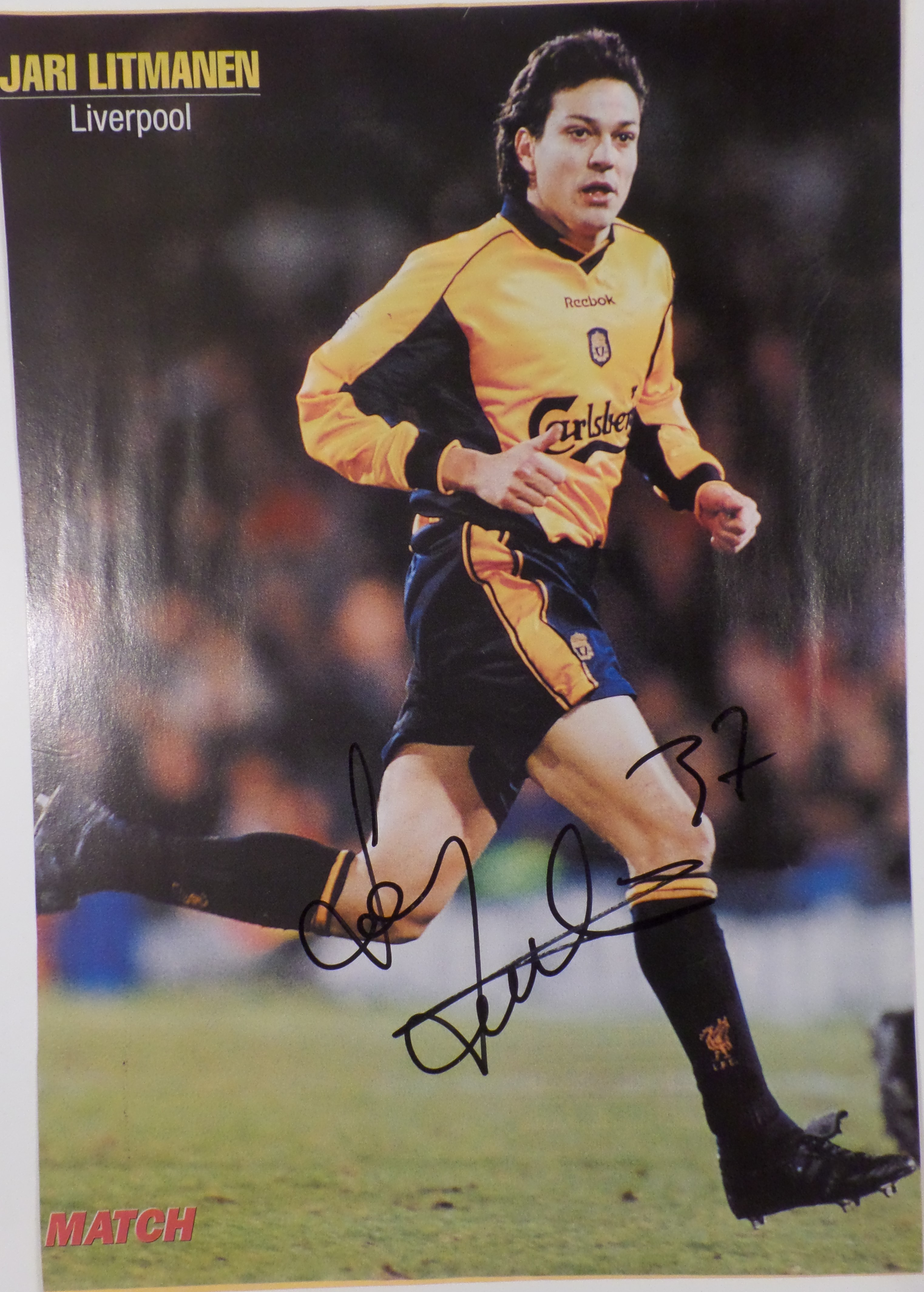 Jari Litmanen har skrevet sin autograf på billedet.