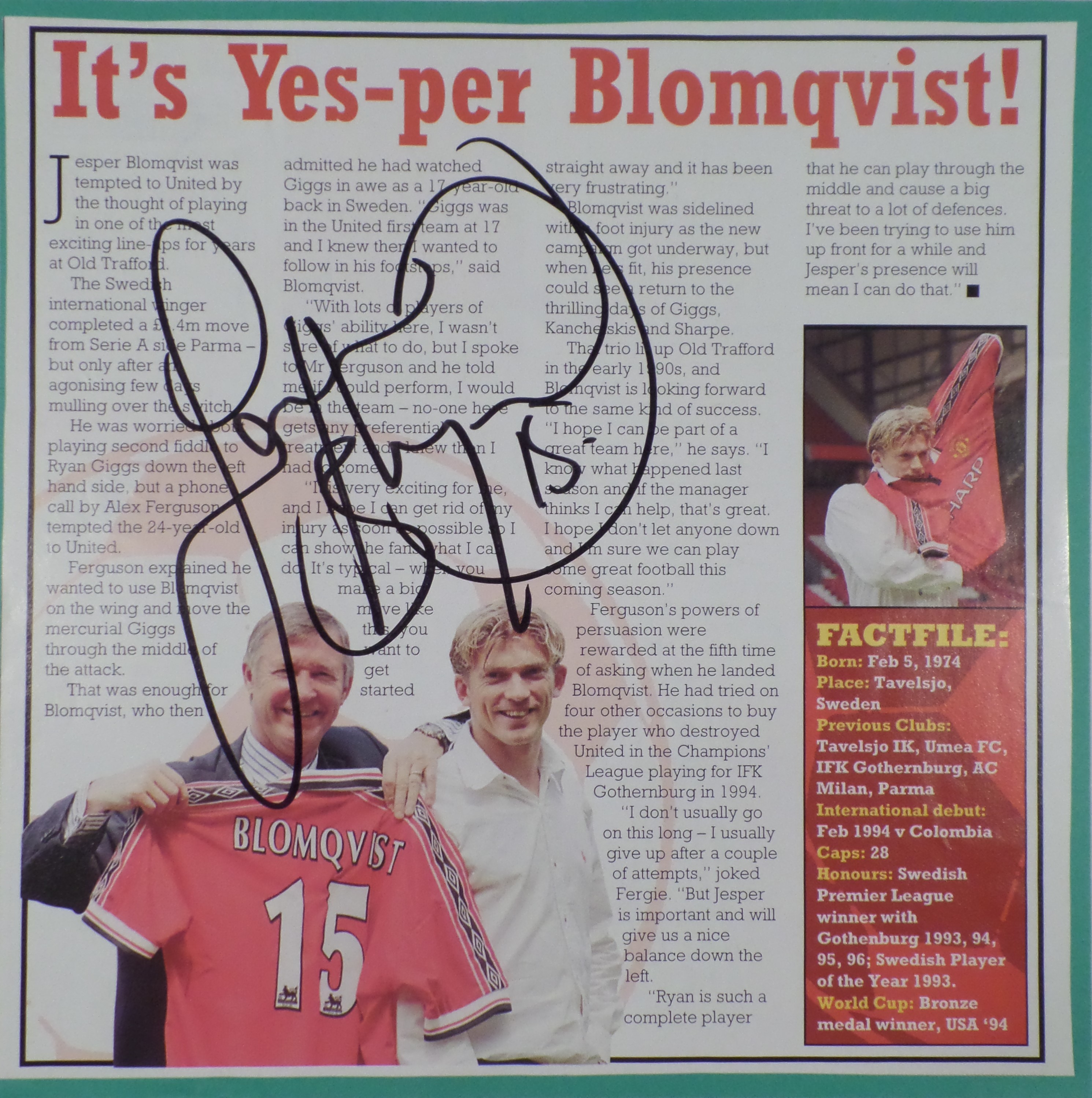 Jesper Blomqvist har skrevet sin autograf på billedet.