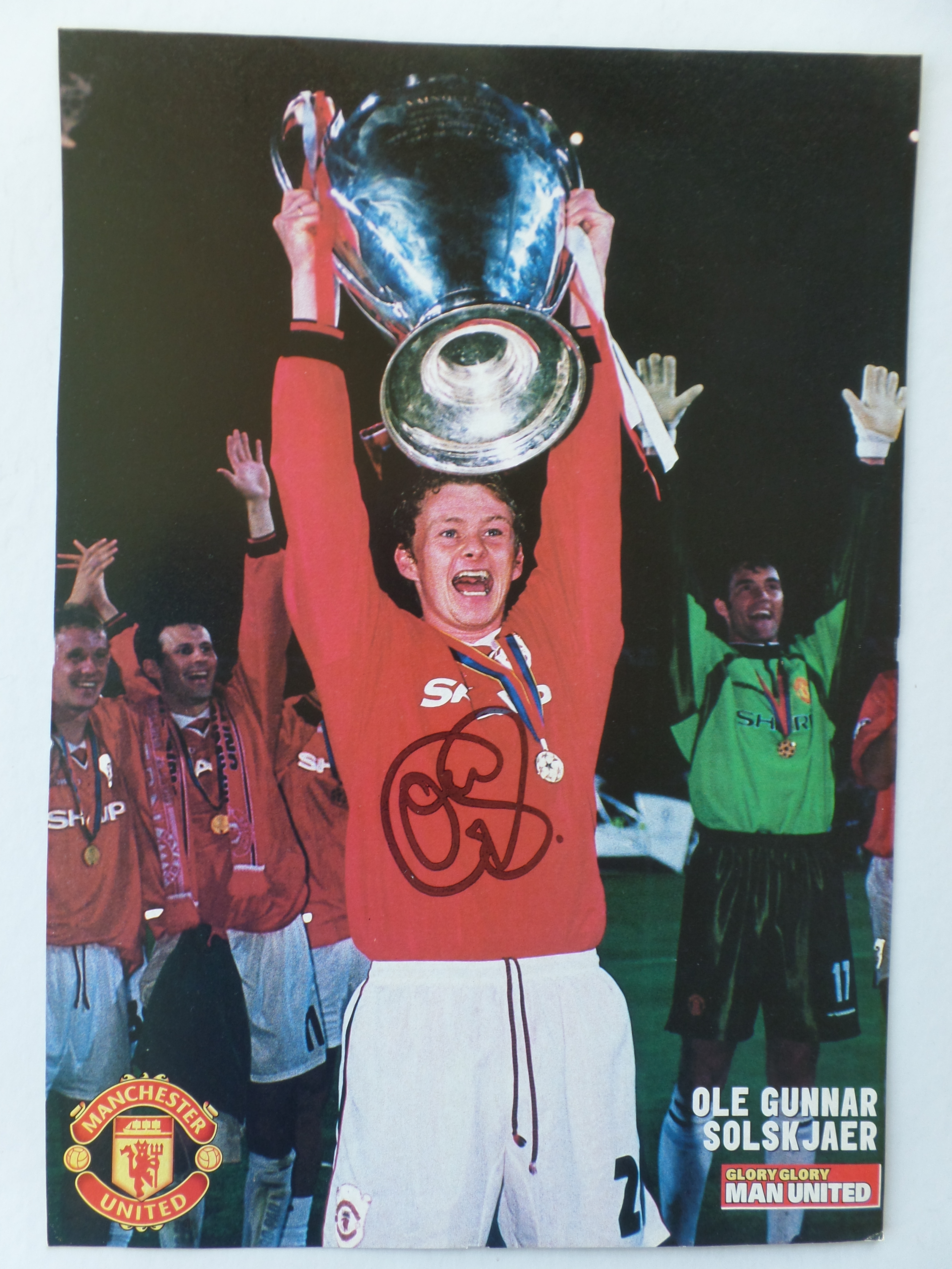 Ole Gunnar Solskjaer har skrevet sin autograf på billedet.