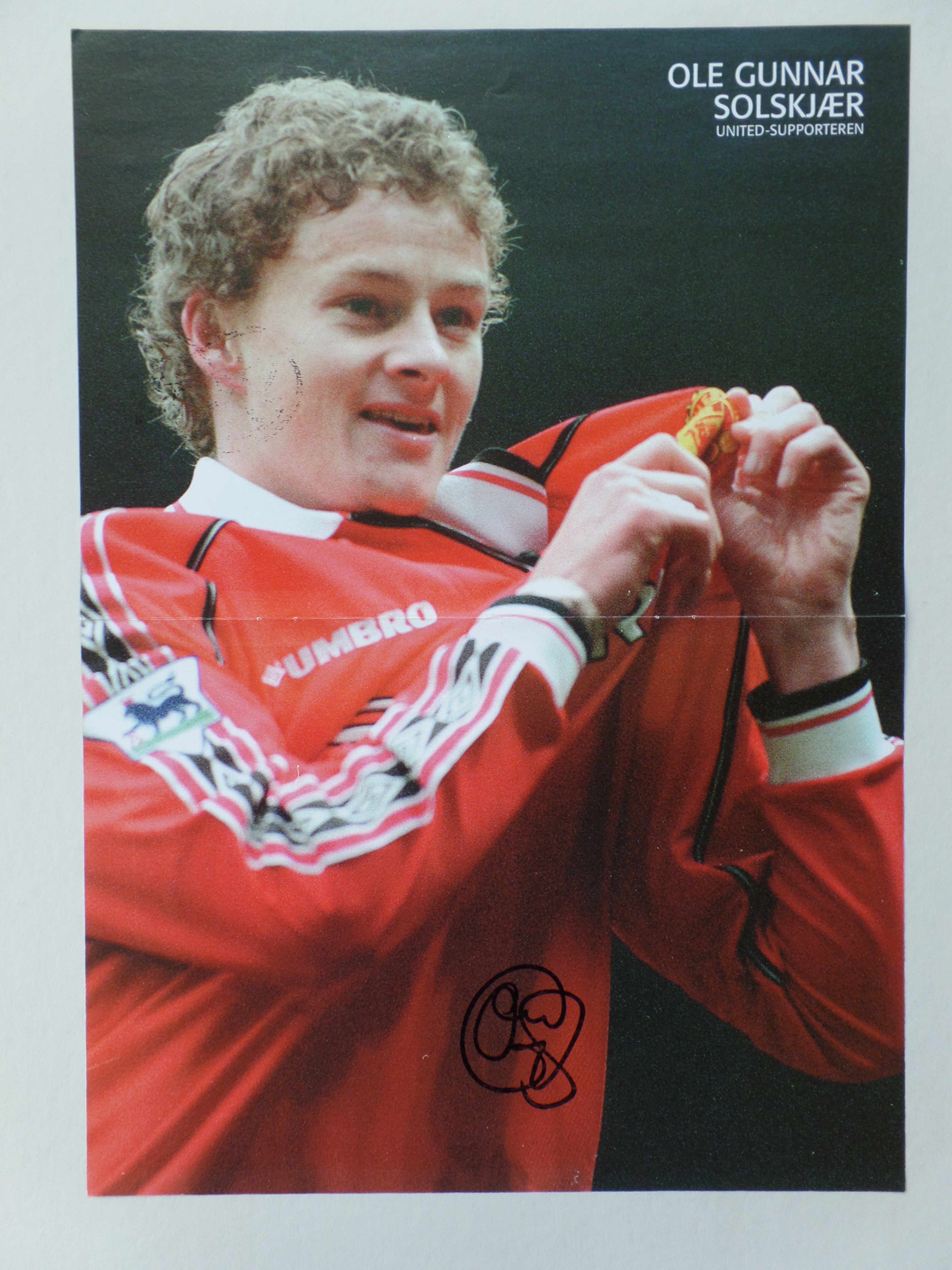 Ole Gunnar Solskjaer har skrevet sin autograf på billedet.