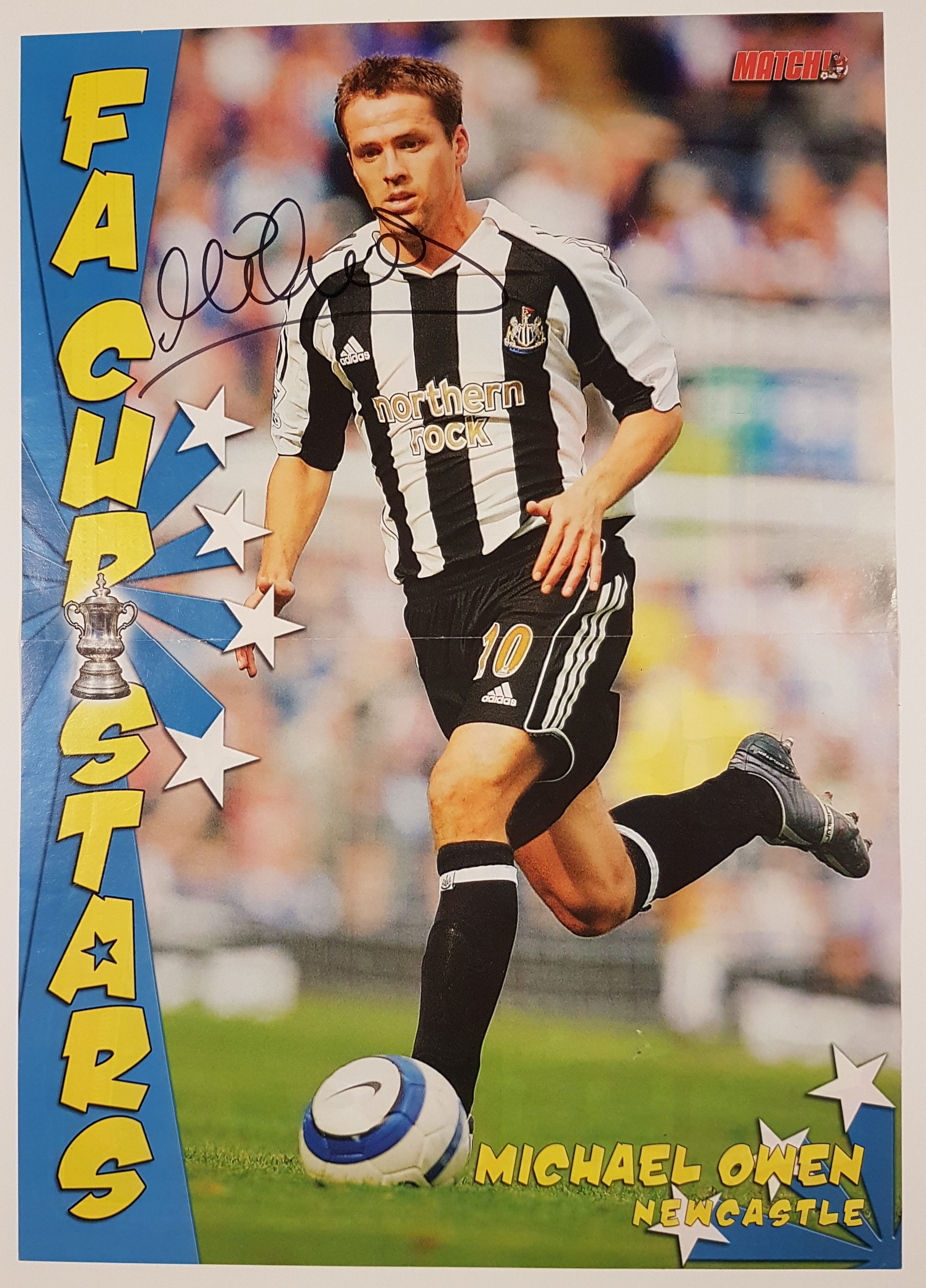Michael Owen har skrevet sin autograf på billedet.
